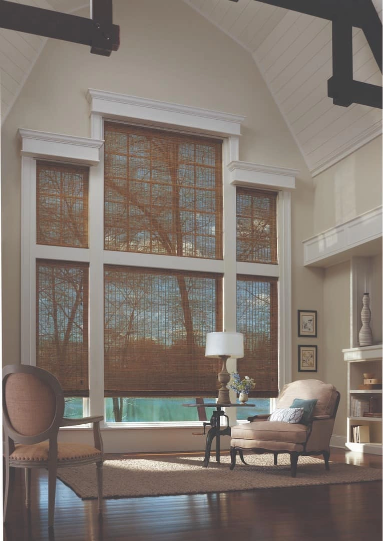 Created from a variety of natural materials including woods, reeds, bamboo, and grass; Provenance® Woven Wood Shades bring the outdoors in with the stylish design. The Provenance® collection of natural weave window treatments can be customized into Roman shades, waterfall Roman shades, or vertical drapery, and the variety of weaves and textures afford a rich variety of design and style choices. Woven shades are available with room-darkening liners for enhanced light control and increased privacy as well as complementing finishing details like edge banding and custom valances or cornices.