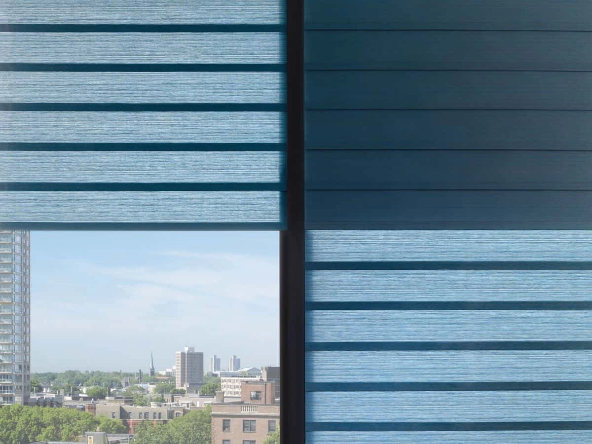 Hunter Douglas makes several lines of window shades that pull from an exclusive and expansive selection of natural textiles, performance-enhanced materials, and colorful fabrics including those popular colors for window shades in 2021 like blue, green, and aqua. The resulting high-end window treatments are therefore endlessly customizable because clients choose from both a wide selection of state-of-the-art window treatment styles and also a range of one-of-a-kind fabrics and textiles.